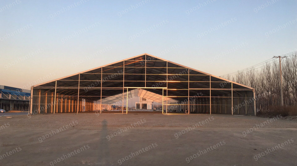 篷房屬于裝配式建筑和模塊化生產組合,地基可以根據實際情況采用螺旋地樁,鋼釬,化學螺栓,壓重等方式安裝,因地制宜,靈活環保,數日內即可完成上萬平方米的拆裝任務。