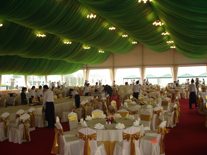 按照普遍情況來說,一般的展會酒席個人空間加上人行道、椅子等設備,平均每人1.5平方米左右。我們高山篷房現有跨度尺寸有3米-50米等規格,長度可根據現場實際需要增加或縮減。篷房租賃
