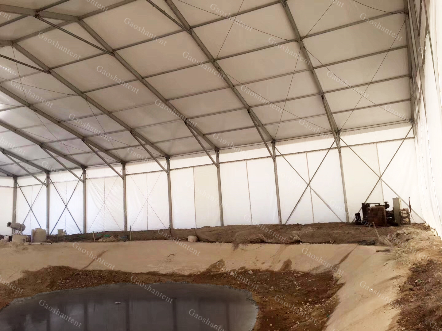 因此,高山篷房在充分了解客戶需求與當(dāng)?shù)貤l件的前提下,設(shè)立一座3000平方人字形篷房。